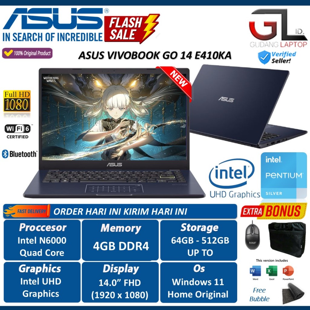 [PROMO]LAPTOP SLIM ASUS BOOK GO 14 E410KA INTEL N6000 RAM 4GB 512GB SSD 14.0 FHD WINDOWS 11 TERMURAH