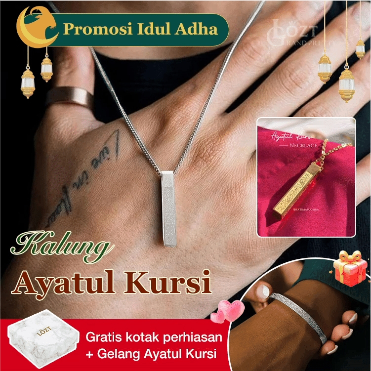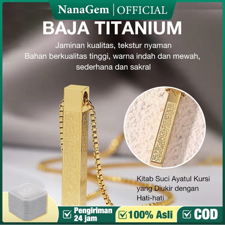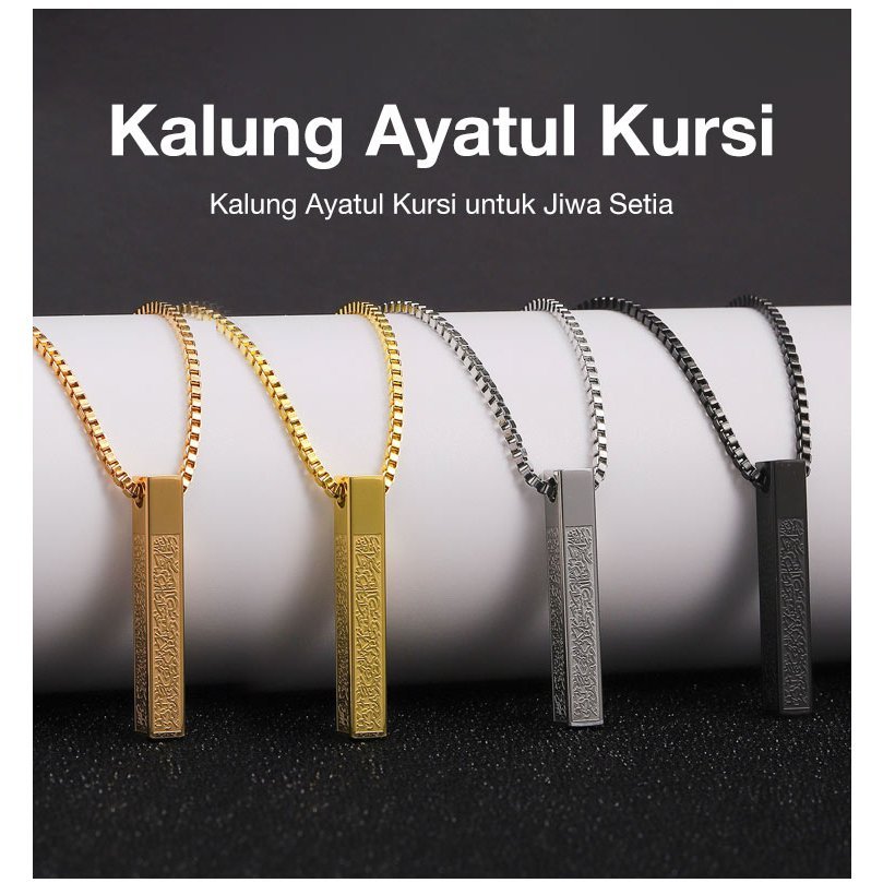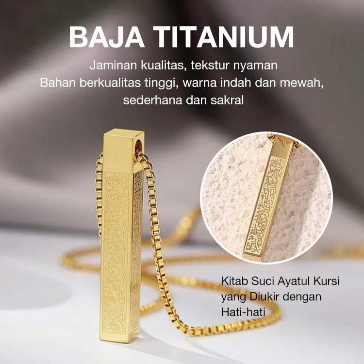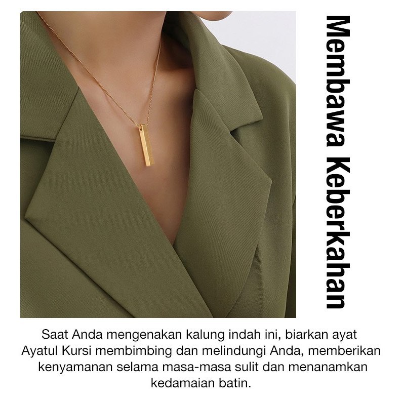 [Beli kalung gratis gelang]Kalung Ayat Kursi Titanium Anti Karat Arab Islami Muslim Berlapis Emas Lafadz Allah Muhammad