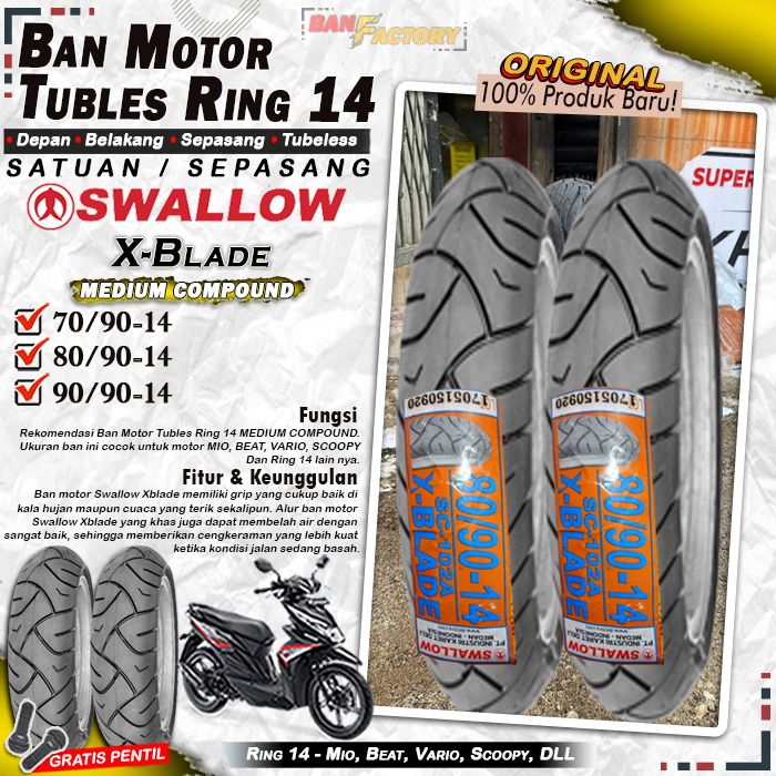 Ban Motor Ring 14 Tubeless Swallow Xblade Ring 14 Tubles Ban Motor Mio Beat Vario Scoopy Ring 14