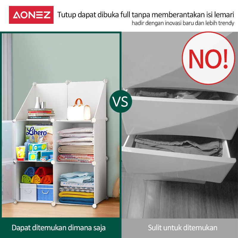PROMO AONEZ Lemari Pakaian Anak Lemari Plastik Wardrobe 4 muka 4 Slot Dengan Pagar Plastik Rak buku