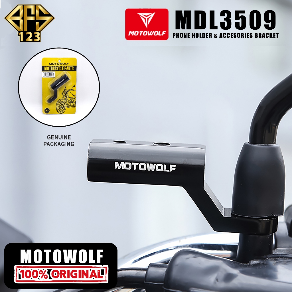 MOTOWOLF Bracket Spion Original Lampu Senter Holder HP Aluminium Aloy