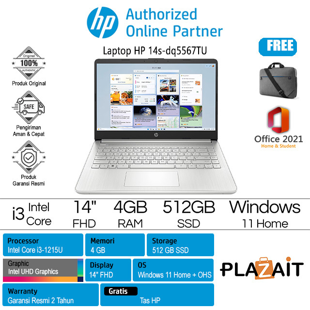 [PROMO]LAPTOP HP 14S-DQ5567TU /DQ5115TU INTEL CORE I3-1215U/12GB/512GB SSD/INTEL UHD GRAPHICS/14
