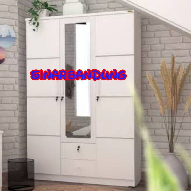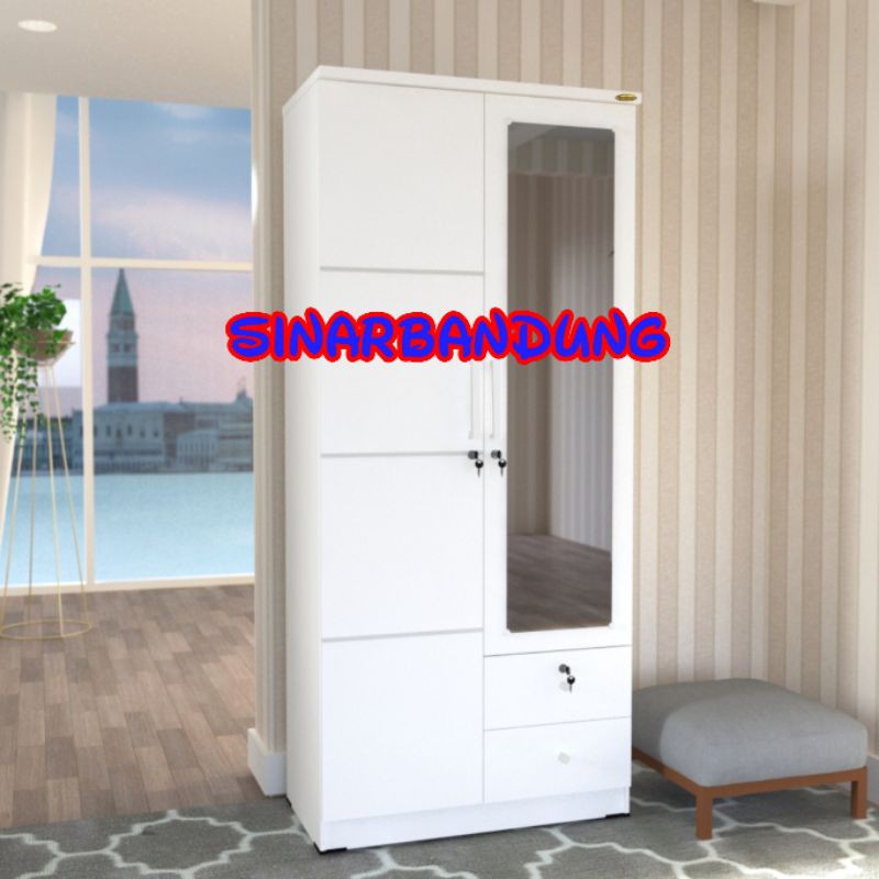LEMARI PAKAIAN MINIMALIS / LEMARI PUTIH ADA LACI ADA KACA