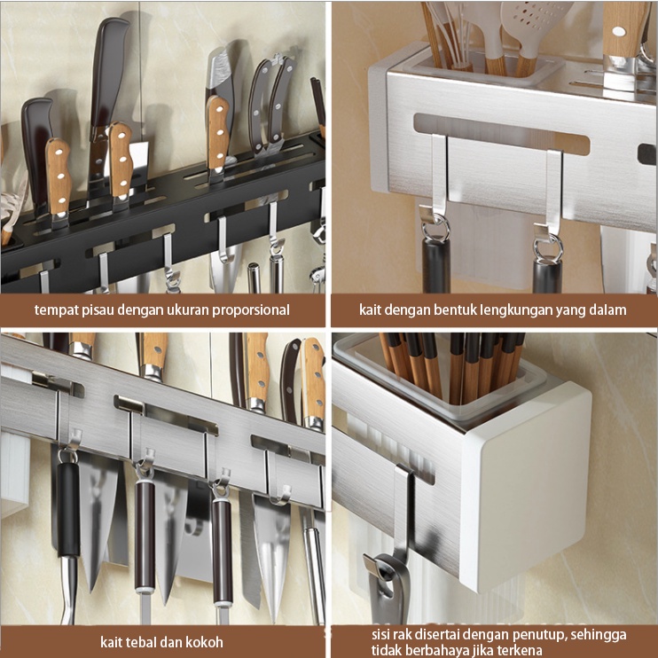 Rak Gantung Pisau Dapur Stainless Steel – Rak Dinding Penyimpanan Alat Masak Serbaguna