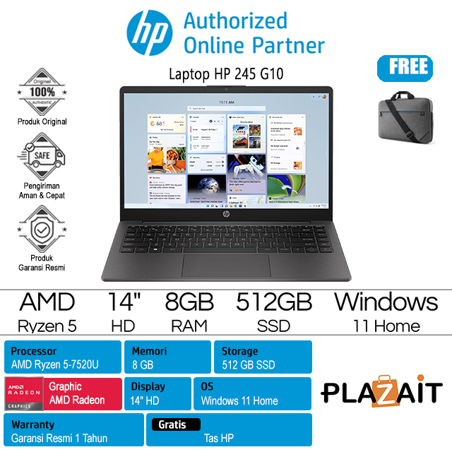 [PROMO]LAPTOP HP 245 G10 53PT /AMD RYZEN 5-7520U/8GB/512GB SSD/AMD RADEON GRAPHICS/14″ HD/WIN 11 HOME/BLACK/1Y