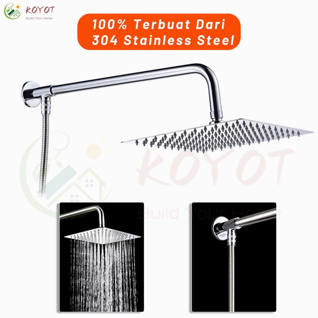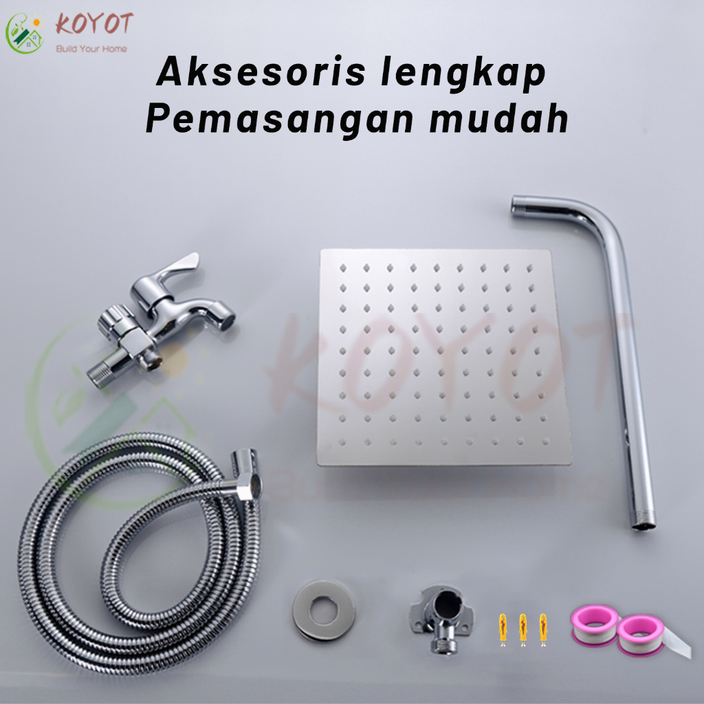 KOYOT Paket Shower Head Shower Kamar Mandi Full Set Kran Cabang Shower 304 Stainless Steel Persegi 8 "