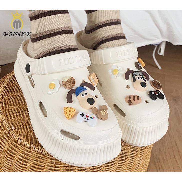 MAIHOOK Sandal Baim Wedges Eva Anti Slip Sandal Kodok Dewasa Wanita Classic Bae Clog Sepatu Bapao Tinggi dengan Jibbitz
