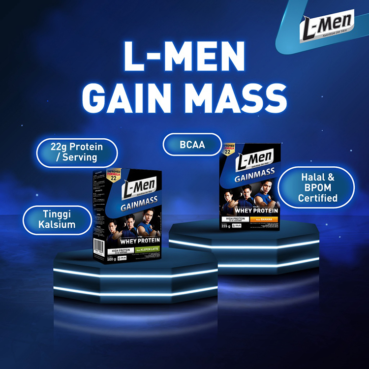 L Men Gain Mass Chocolate 225 gram Suplemen Penambah Massa Otot Tinggi Whey Protein