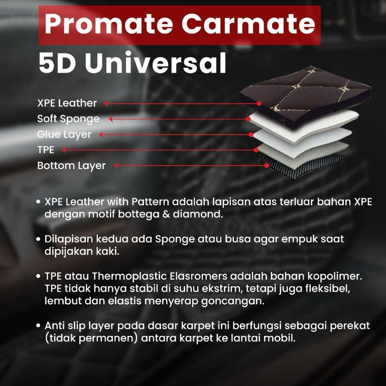 Karpet Mobil Kulit 3Baris 6pcs Universal Car Mats Leather Waterproof Premium 23Baris Mudah Di Bersihkan Anti Sobek