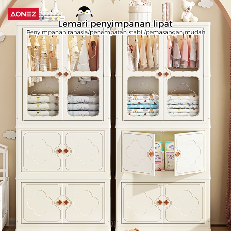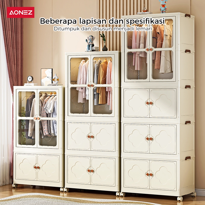 PROMO AONEZ Lemari Plastik Pakaian Dapat Dilipat 4&5 Tingkat Laci Susun Storage Cabinet Plastik Rak Susun Penyimpanan
