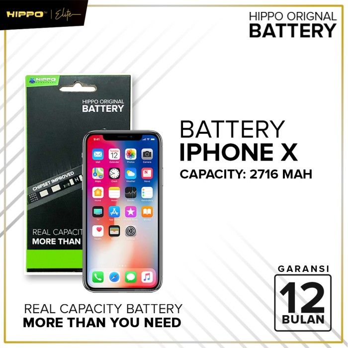 Hippo Baterai iPhone X Original 2716mAh Battery handphone Premium