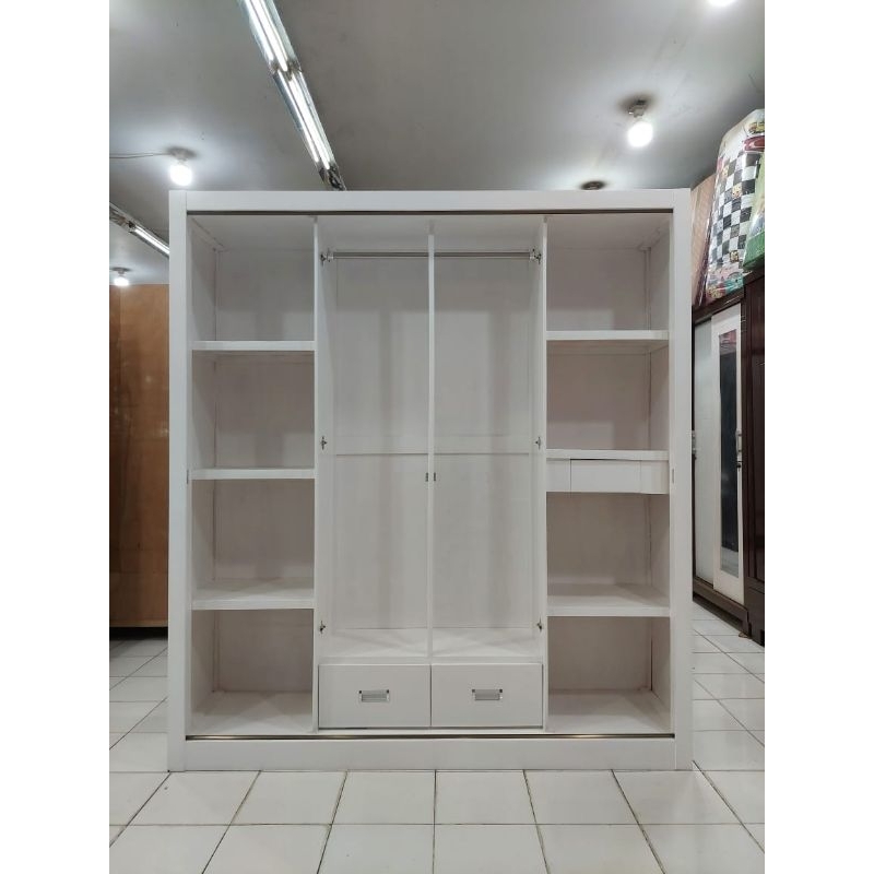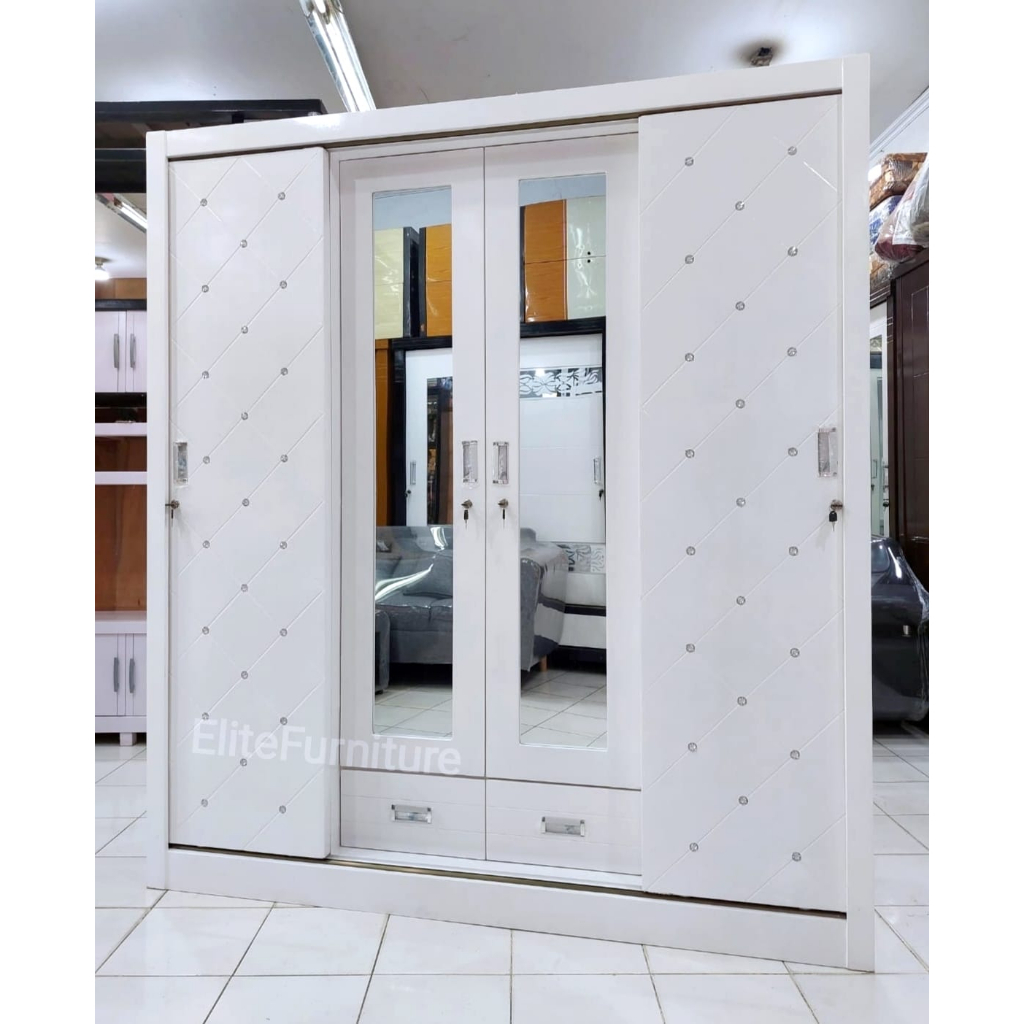 LEMARI BAJU 4PINTU SLIDING JUMBO , LEMARI BAJU SLIDING 4PINTU PUTIH , LEMARI BAJU 4PINTU MURAH