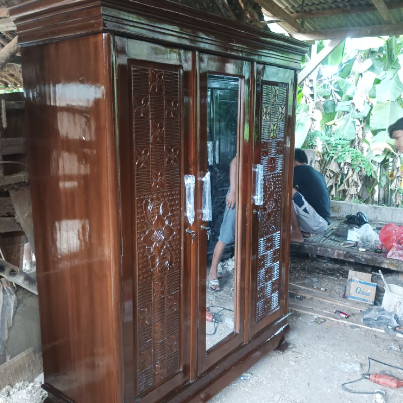 LEMARI PAKAIAN 3 PINTU HIJAB DOBLE RAK FULL KAYU JATI