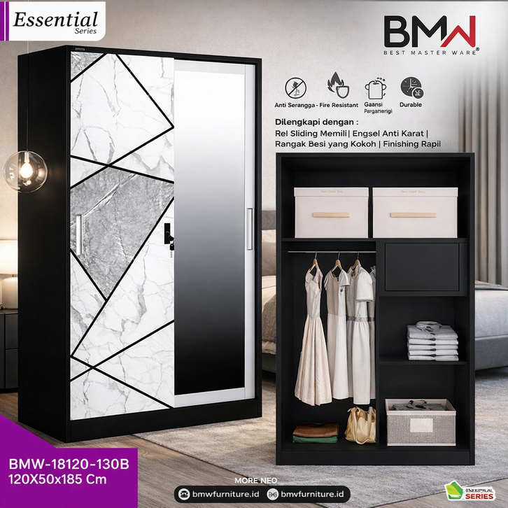 Lemari Sliding 2 Pintu - Lemari Pakaian Besi Sliding Anti Rayap 2 Pintu - Lemari Baju Sliding - Lemari Baju Minimalis