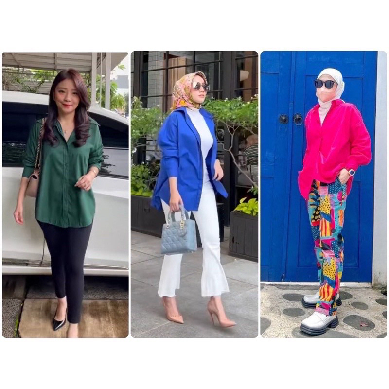 Kemeja Basic Oversize Zara LD 120 Atasan Warna Wanita Kekinian Kancing Aktif