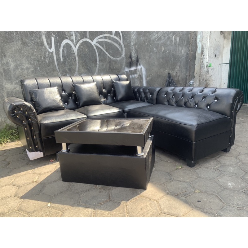 sofa ruang tamu minimalis PROMO MURAH MERIAH SOFA MINIMALIS L PUTUS KANCING 1000 + MEJA + 3 BANTAL TERLARIS