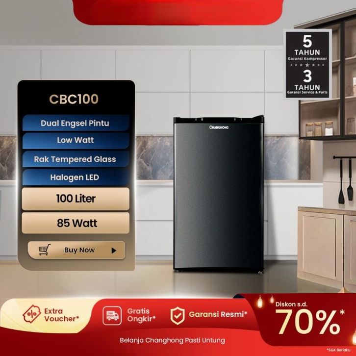 [Star] Changhong Kulkas 1 pintu Refrigerator Kapasitas 100 Liter – Black CBC 100 (Semi Auto-Defrost ) Best Seller!