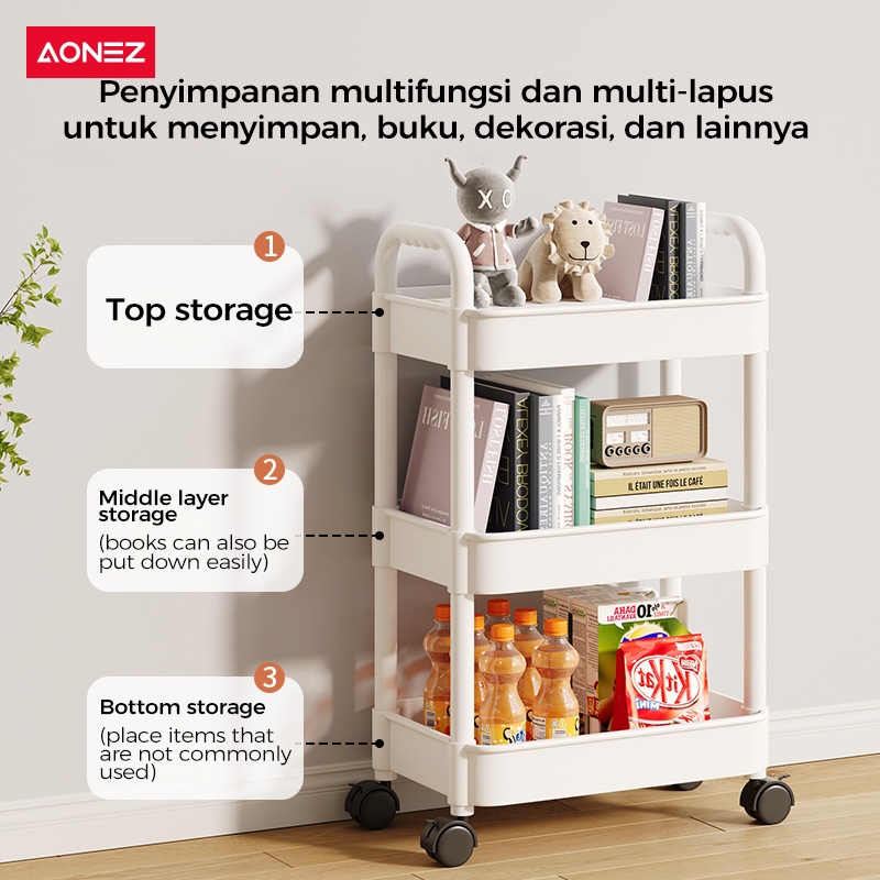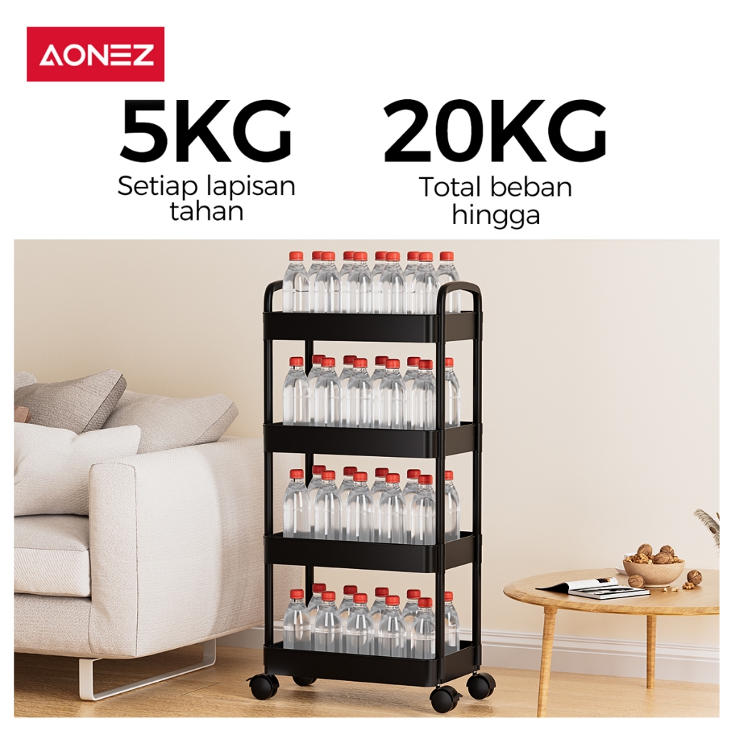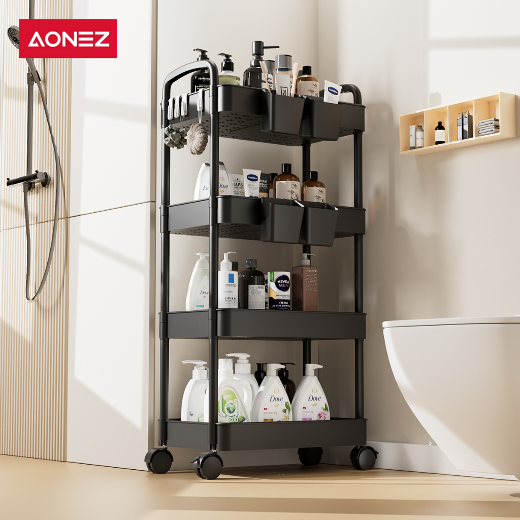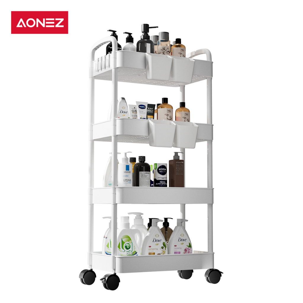 PROMO AONEZ Rak Troli Susun Rak Kamar Mandi Dapur Kamar Tidur Serbaguna 4 Susun Rak Penyimpanan Trolley