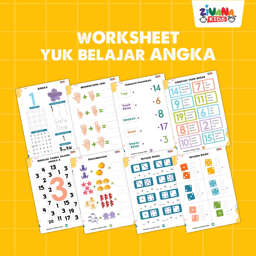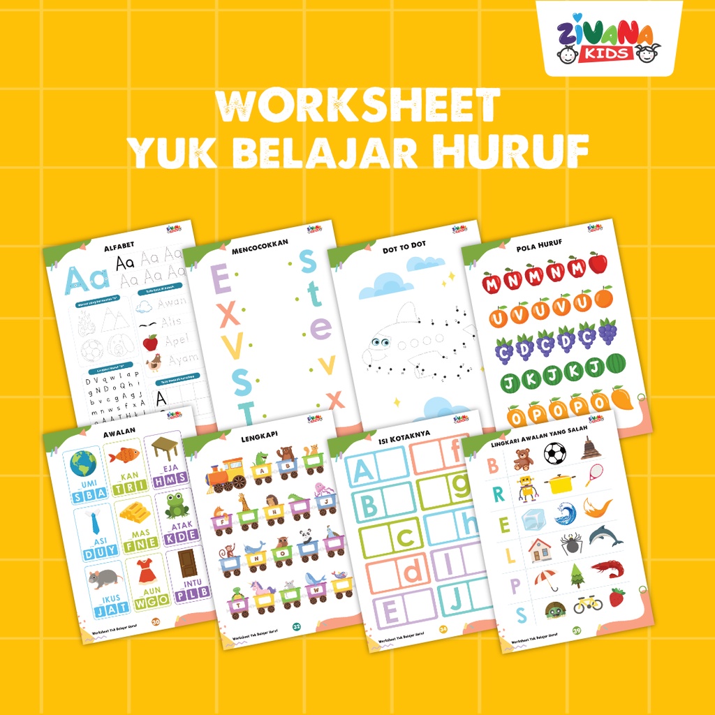 ZIVANAKIDS Worksheet Yuk Belajar Huruf Alfabet Angka Hijaiyah Lembar Kerja Edukasi Anak Montessori