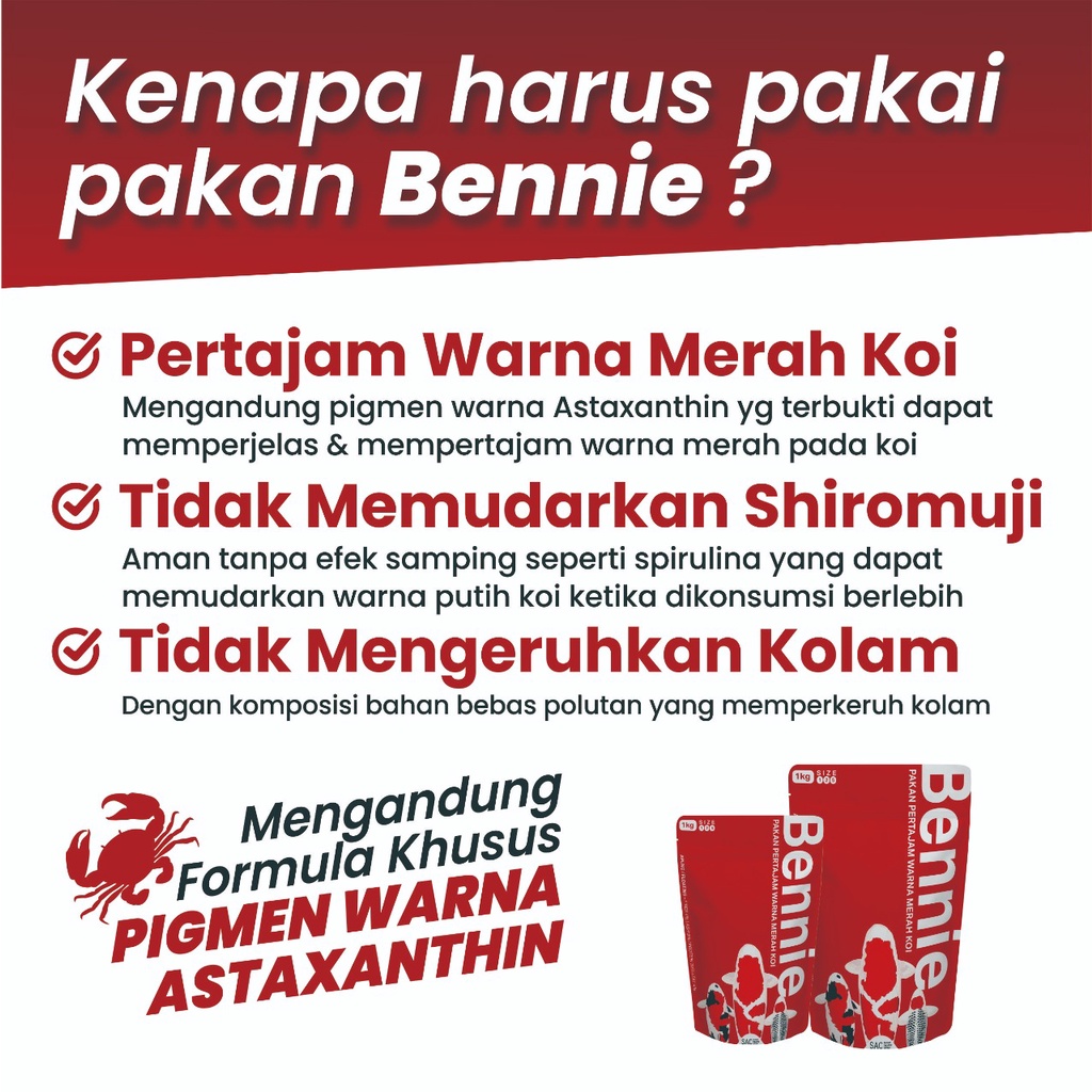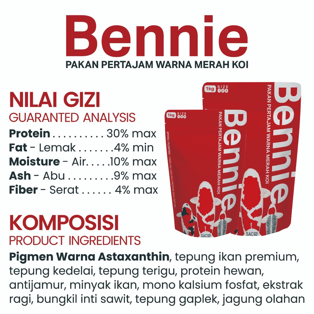 (FLASH SALE) Pakan Pelet Makanan Ikan Koi Pertajam Warna Merah Bennie 1KG 5mm Color Expert