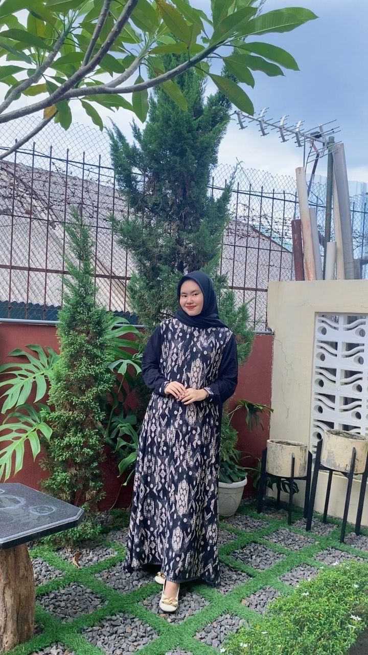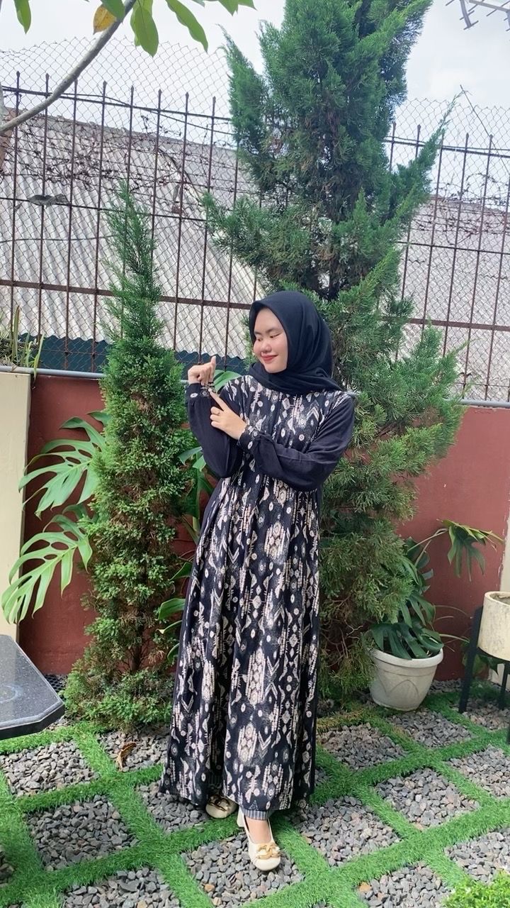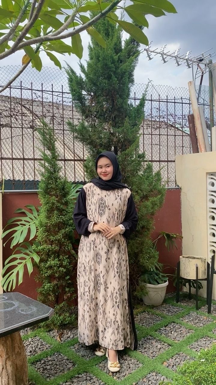 Renata Dress Cantik Gamis Wanita Terbaru 2025 Polos Mix Motif Etnik Bahan Rayon Viscose by FairyCy
