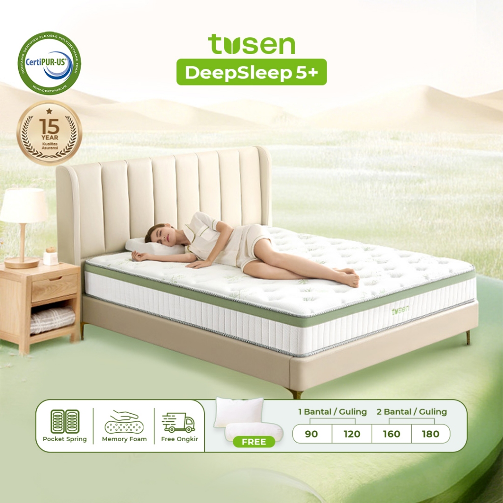 TUSEN DEEPSLEEP 5+ KASUR MEMORY FOAM TINGGI 25CM DENGAN UKURAN 90X200 - 120X200 BERAROMA MUGWORT POCKET SPRING GARANSI 15 TAHUN - TUM08