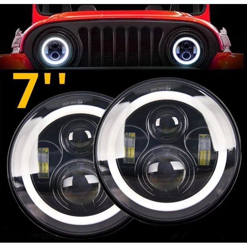 LAMPU HEAD LAMP JEEB HRJ ring full 7 inch lampu head lamp mobil H4 75w merk HRJ