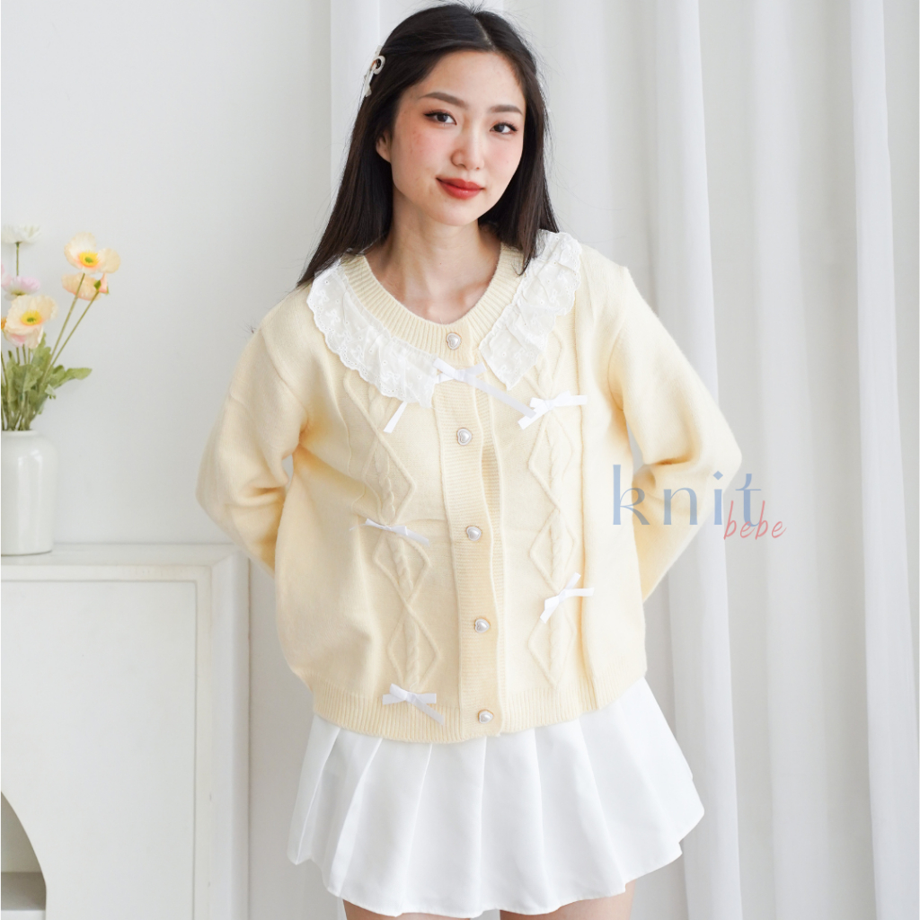 CARDIGAN RAJUT WANITA KNITBEBE JEAN ATASAN CARDIGAN RAJUT RIBBON KNIT TOP BAJU PITA COQUETTE
