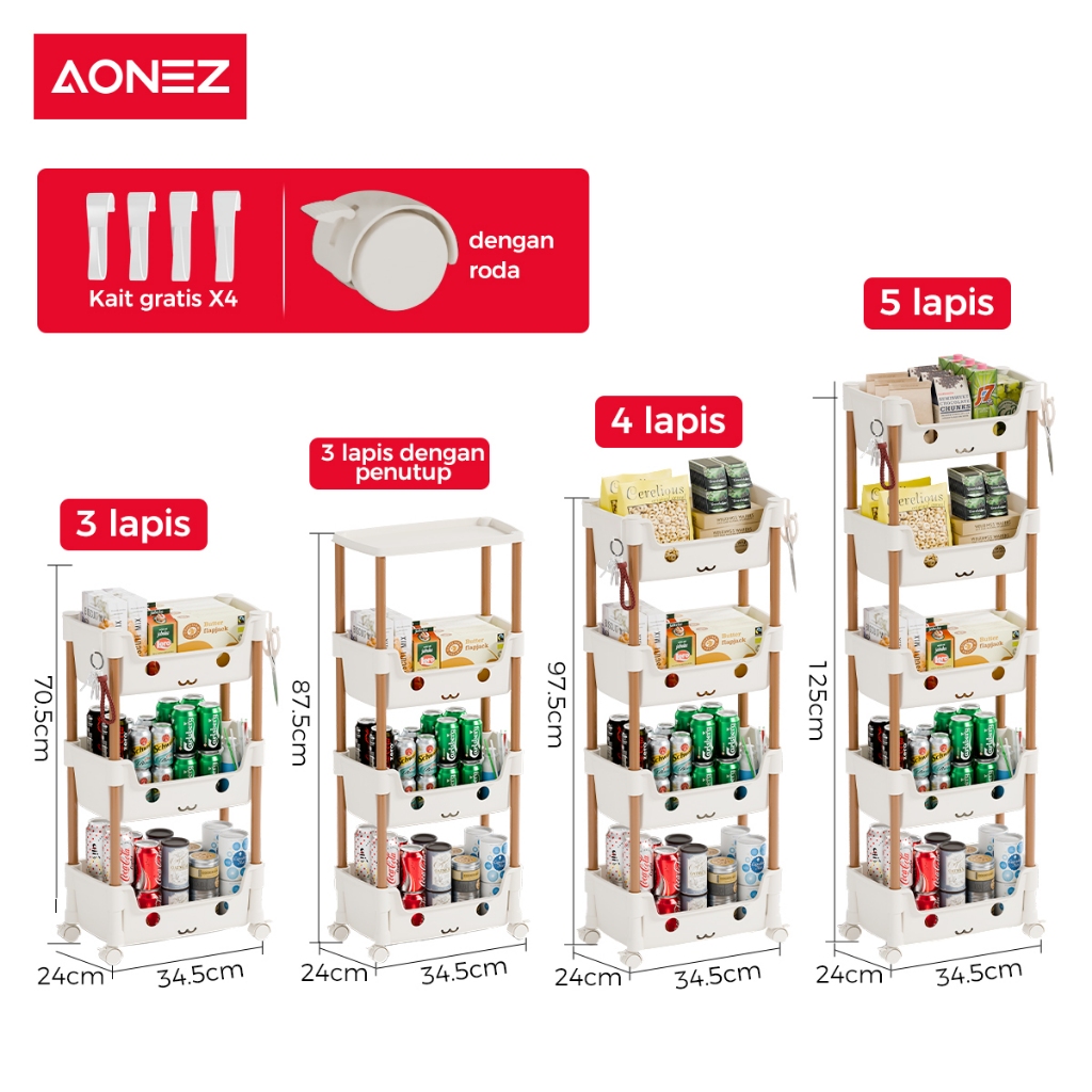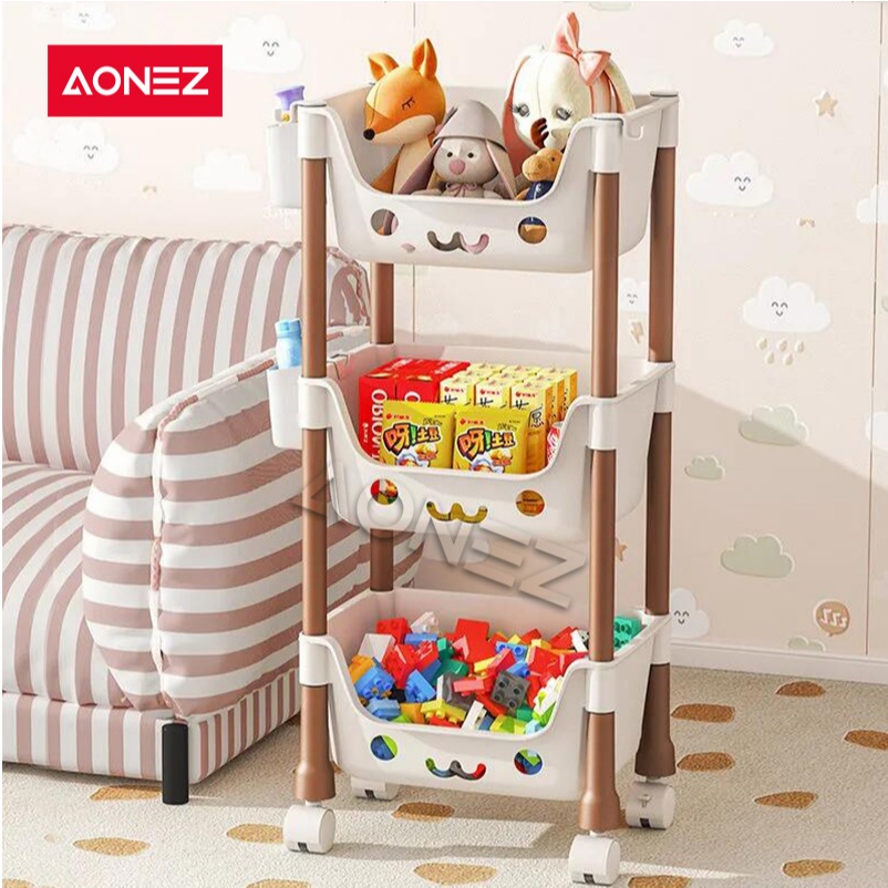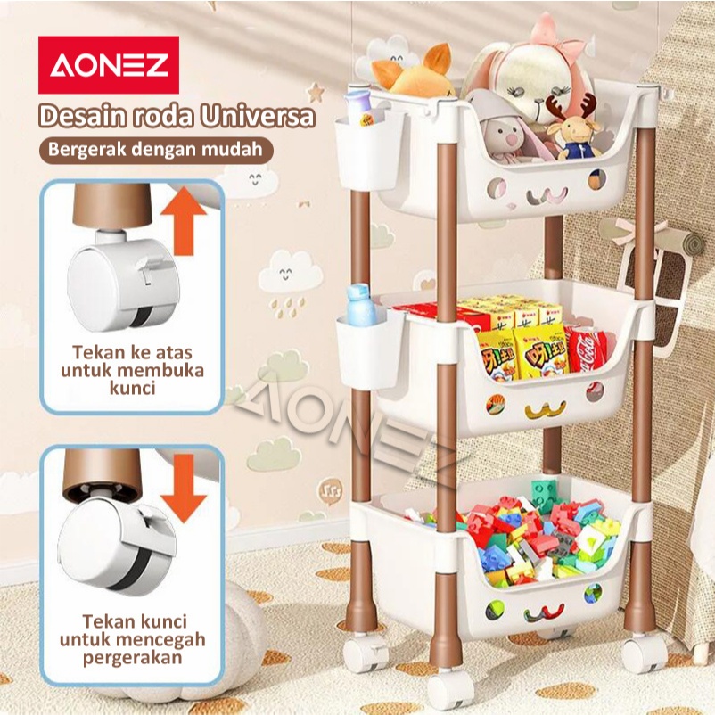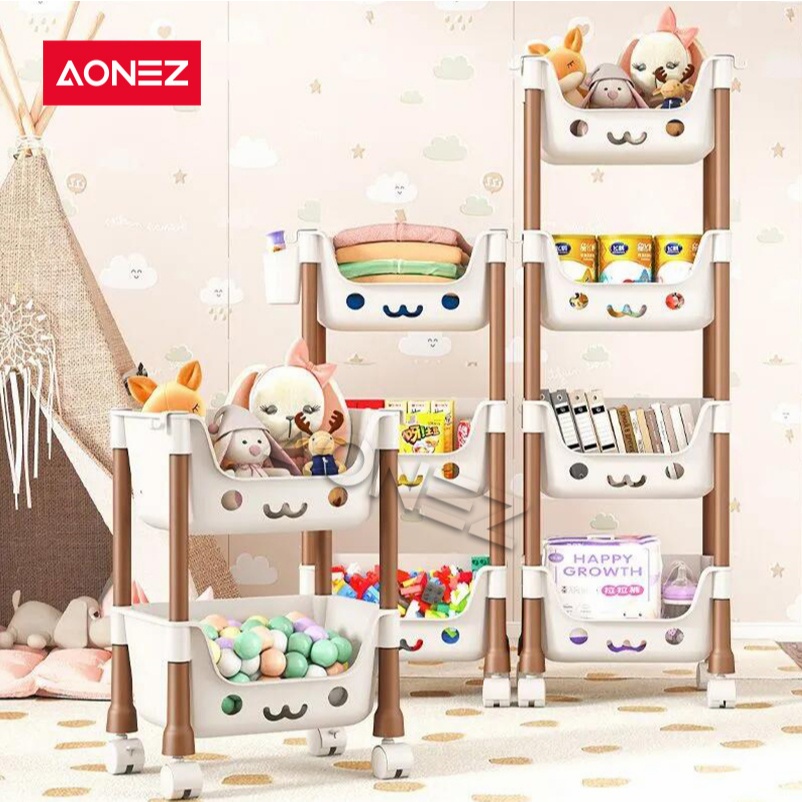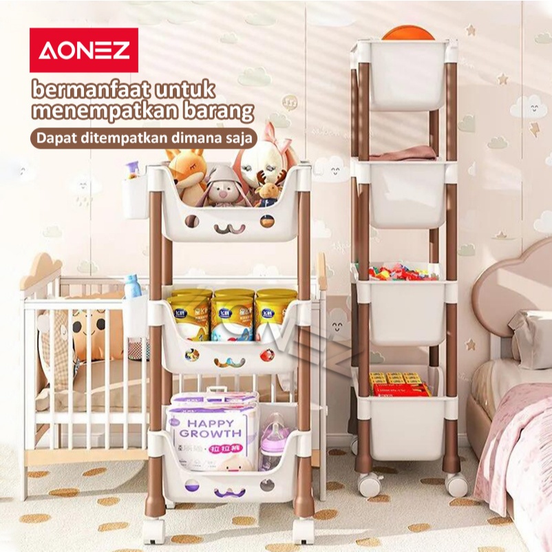 PROMO AONEZ Rak Penyimpanan Mainan Anak Kartun - Rak Serbaguna dengan Roda, Desain Menarik dan Aman untuk Kamar Anak
