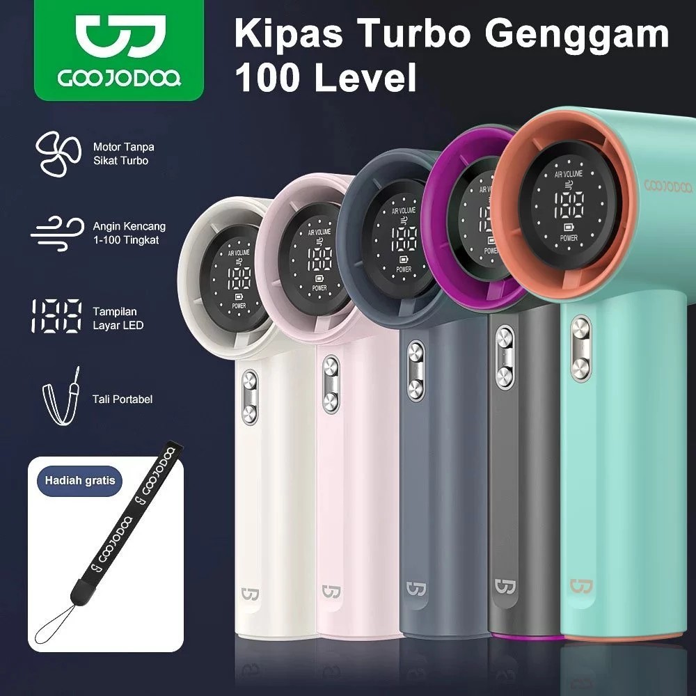 DP 0 GOOJODOQ KIPAS TURBO 100 GEAR WIND HIGHTSPEED KIPAS ANGIN PORTABLE DIGITAL DISPLAY ADJUSTABLE FAN