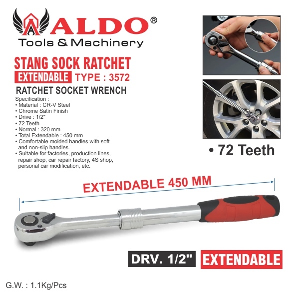 STANG SOCK RATCHET 1/2” EXTENDABLE 3572 / RATCHET SOCKET WRENCH / KUNCI TORSI PENDEK PANJANG / KUNCI SHOCK / KUNCI SOCK
