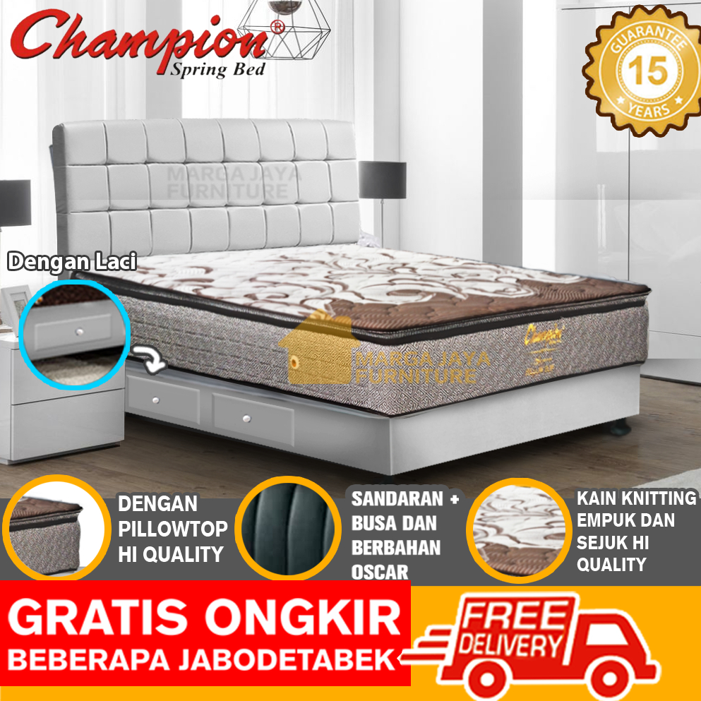 Set Springbed + Divan Sandaran Kasur CSet Shampion Symbol Pillow Top 120 160 180 200 Matras Spring Bed Pillowtop 160x200
