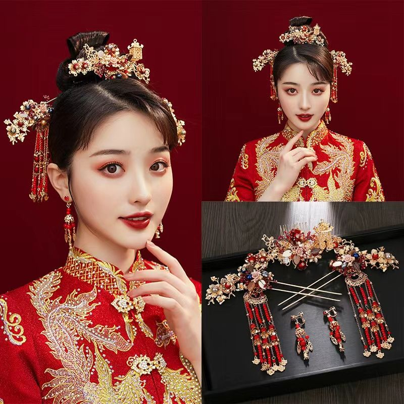 1set Konde Cina Hiasan Rambut Pengantin Aksesoris Jepit Rambut Hanfu Untuk Hiasan Kepala Pengantin