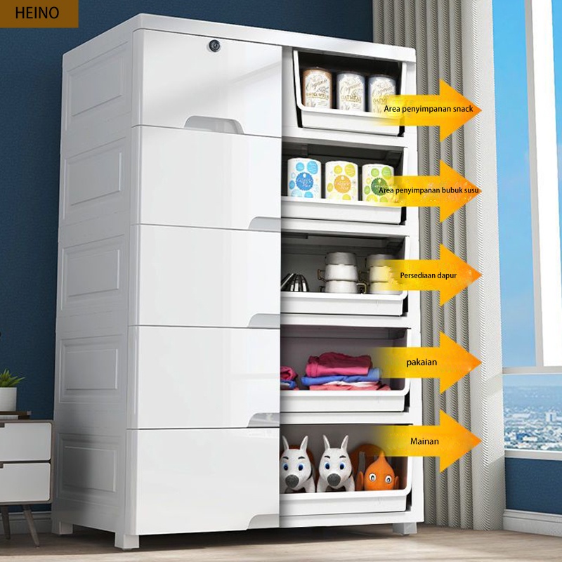 HEINO 50CM LEMARI PAKAIAN PLASTIK LEMARI BERLACI DAPAT DITUMPUK SERBAGUNA LEMARI BERLACI DENGAN KUNCI DAN LEMARI BERLACI TANPA KUNCI LEMARI LACI LEMARI PENYIMPANAN POPOK LEMARI TAHAN DEBU YANG