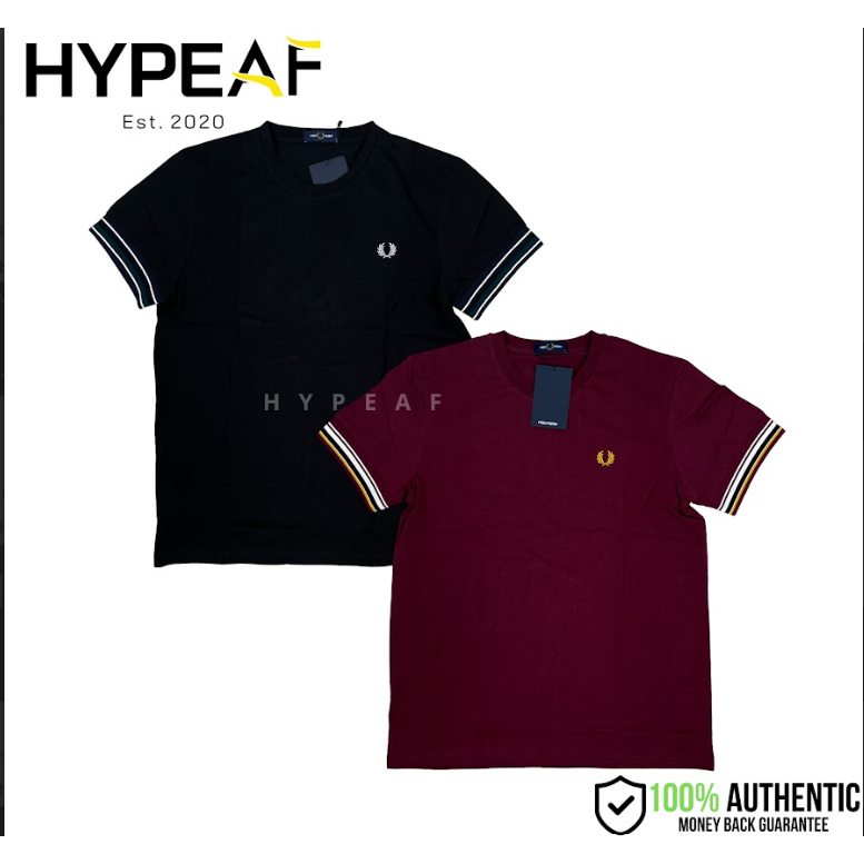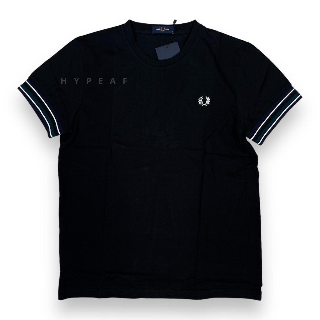 Fred Perry Striped Cuff Tee Katun Hitam Elegan