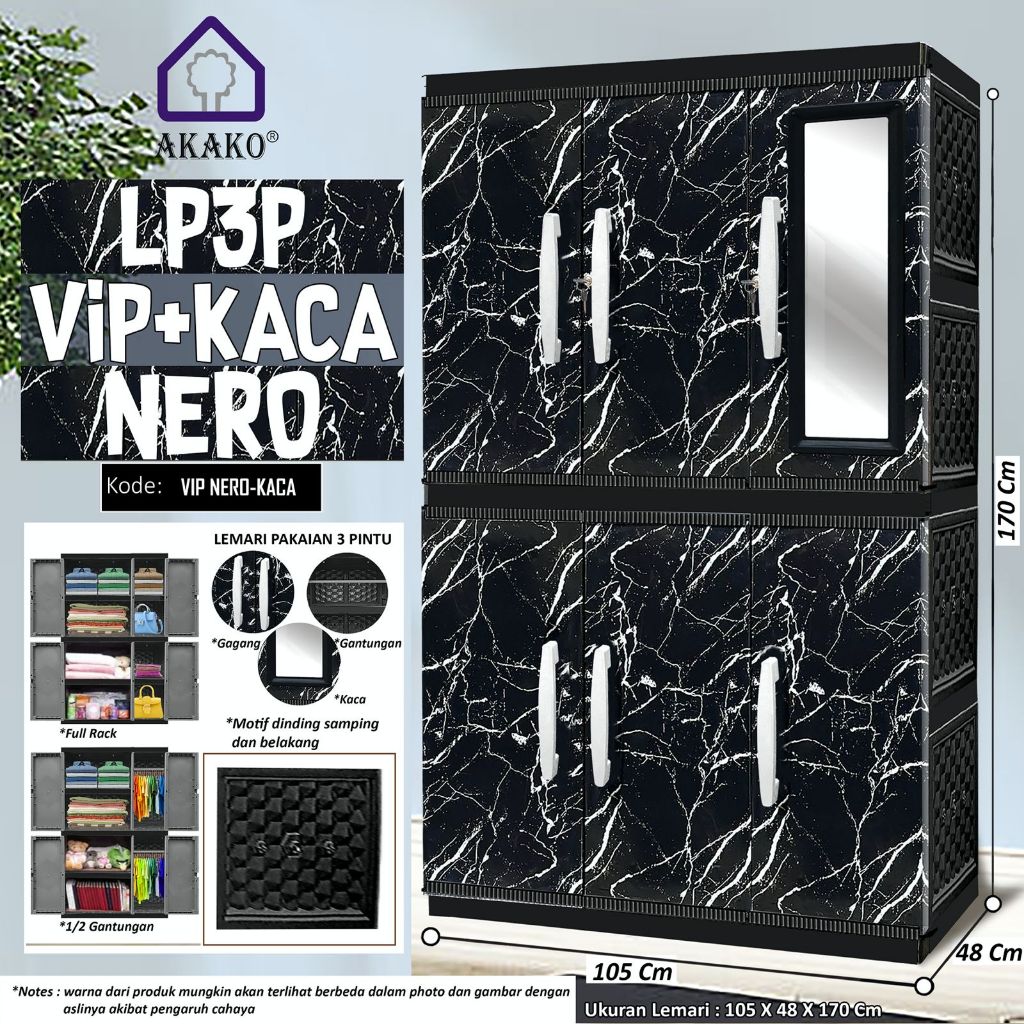 [PROMO] AKAKO - LEMARI PAKAIAN LEMARI PLASTIK 3 PINTU LEMARI JUMBO MOTIF VIP - KODE : LP3P-VIP