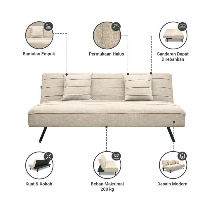 Sofa Bed Fabric - Krem Tempat Duduk Multifungsi Sofa Tidur 2In1 Kursi Santai