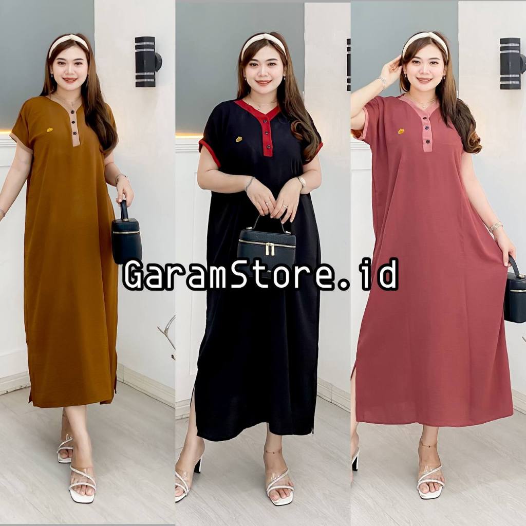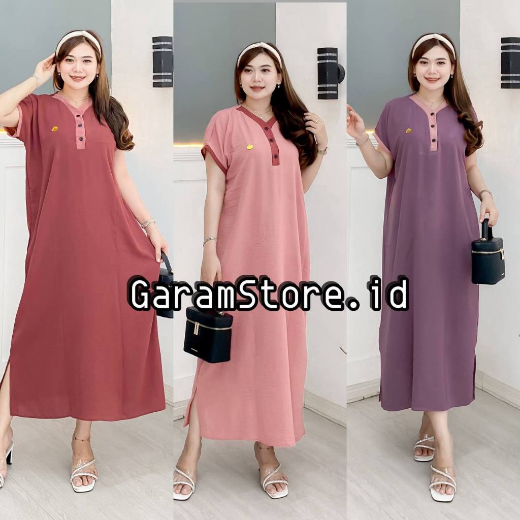 PAKET 3PCS DASTER FOMO DRESS WANITA BUSUI BUMIL BAHAN CRINCLE AIRFLOW LD 120 PB 120 GARAMSTORE KANCING CRINKLE