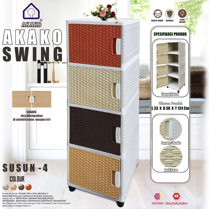 [PROMO] AKAKO - LEMARI PAKAIAN PLASTIK SWING 1 PINTU SUSUN 2, 3, 4 DAN 5 MOTIF ROTAN ANYAMAN PREMIUM