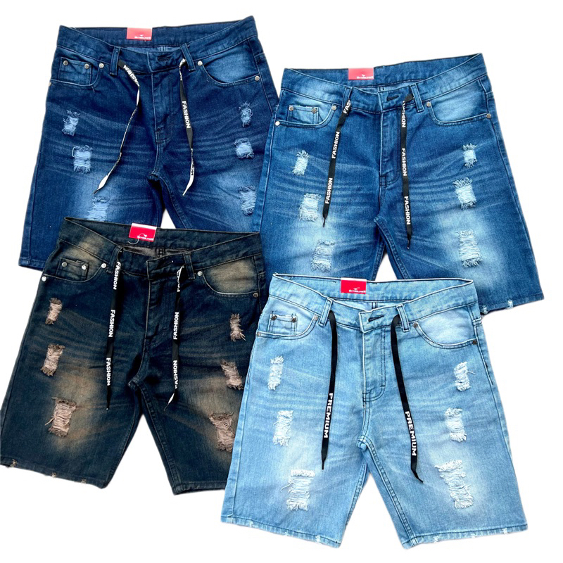 [PROMO] CELANA JEANS PENDEK SOBEK PRIA WISKER JEANS PENDEK RIPPED ROBEK PRIA PREMIUM DISTRO NEW