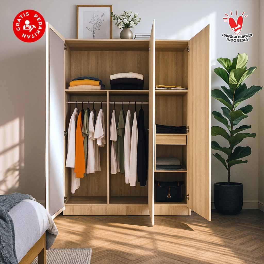 Harvest Furniture Lemari Baju Pakaian 3 Pintu TERMURAH
