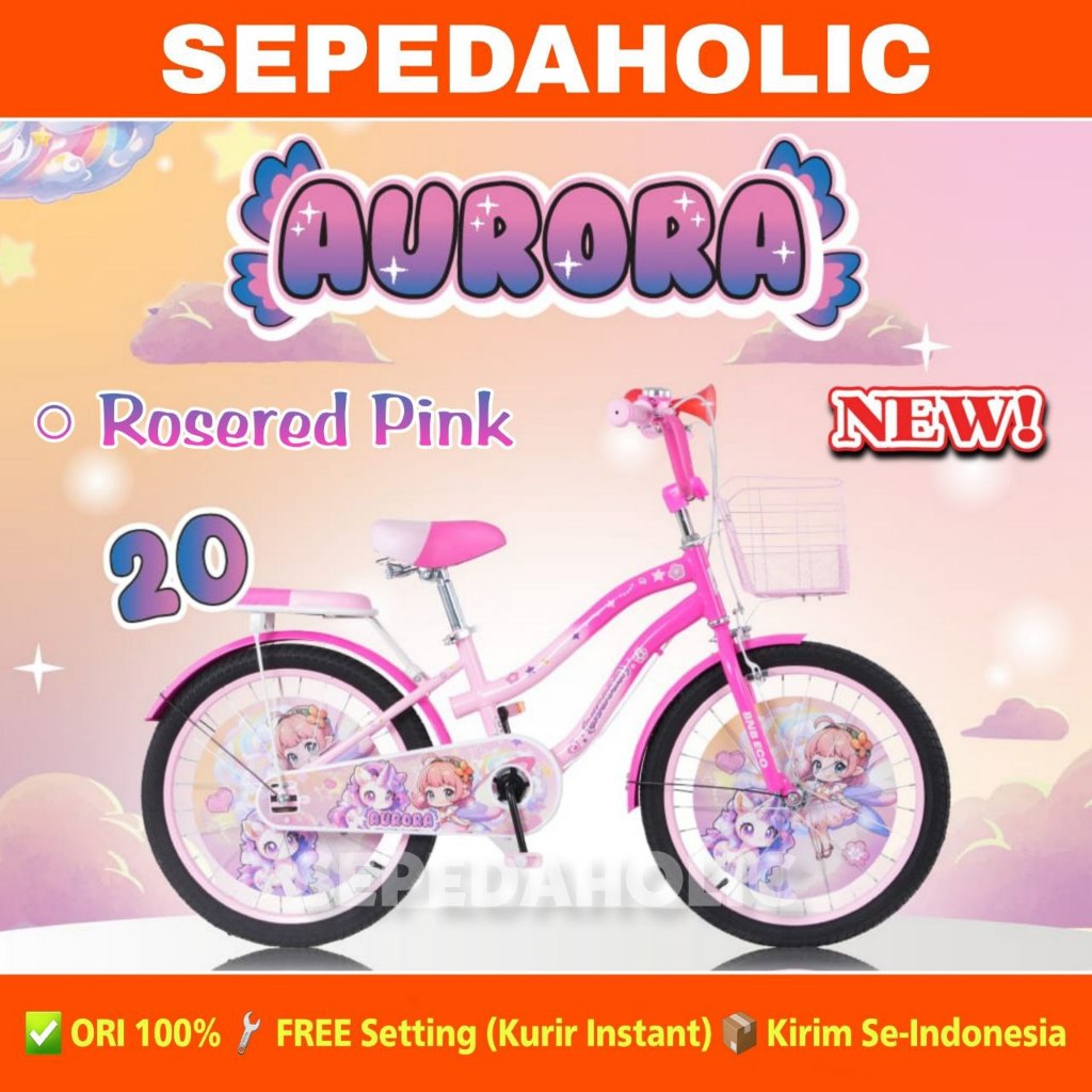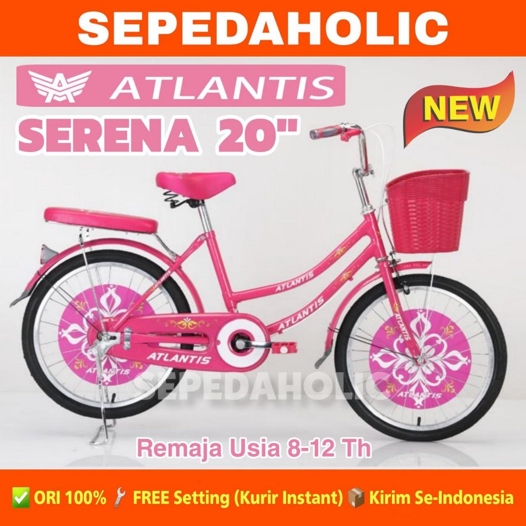 Sepeda Anak Remaja Perempuan ATLANTIS SERENA 95L BNB AURORA VELION 2055 Ukuran 20 Inch Keranjang Usia 8-12 Tahun