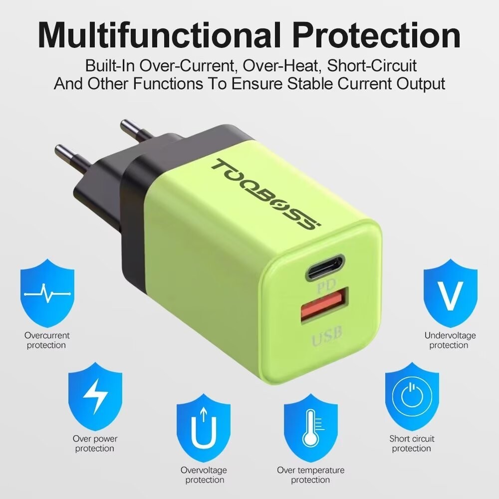 Adapter Charger Fast Charging 38W Dual Port USB Type C QC 3.0 Travel Wall Charger