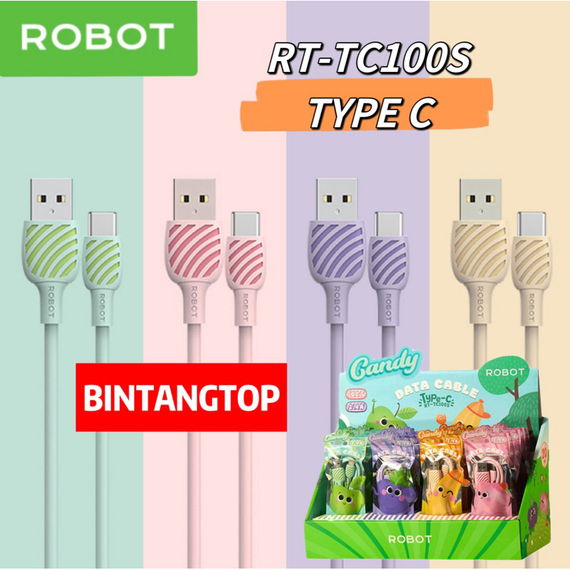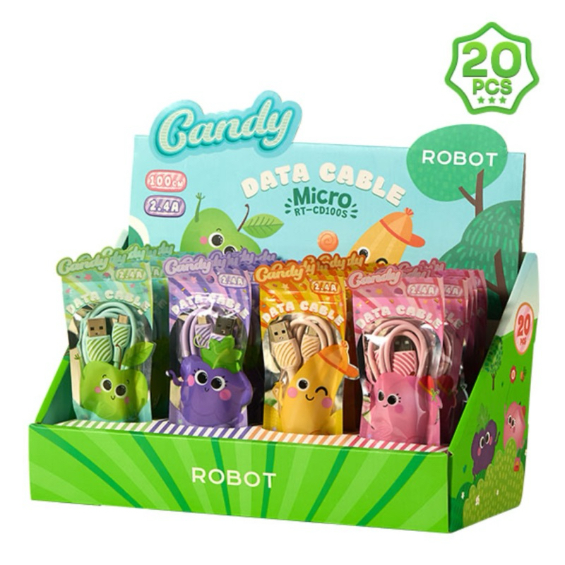 KABEL DATA ROBOT CANDY RT-CD100S MICRO USB / RT-TC100S TYPE C 2.4A 100CM ORIGINAL GARANSI RESMI 1TAHUN