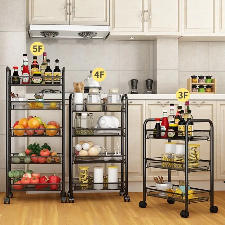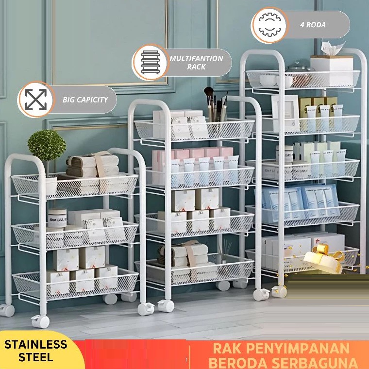 ESINDO Rak Penyimpanan Beroda Serbaguna / Rak Ruang Tamu Bertingkat / Rak Troli Salon/Rak Roda Susun