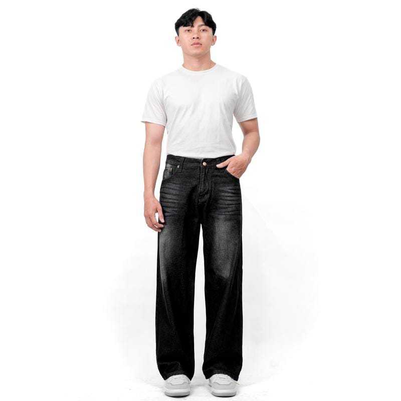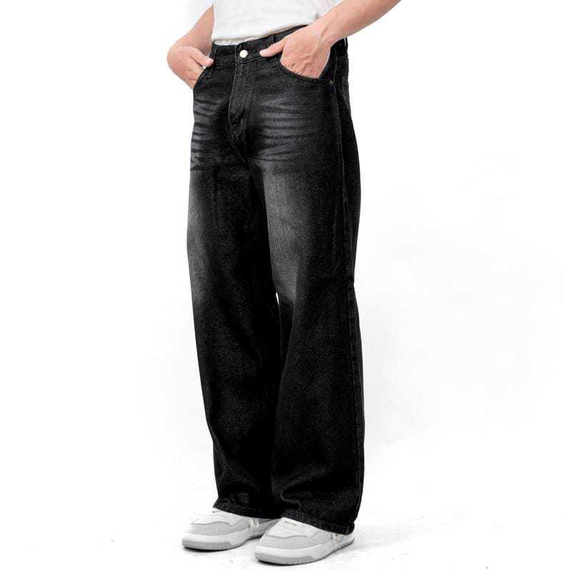 Celana Jeans Wide Leg Wisker Lebar Gombrong Skena Black Wisker Pria Loose Fit Jumbo Big