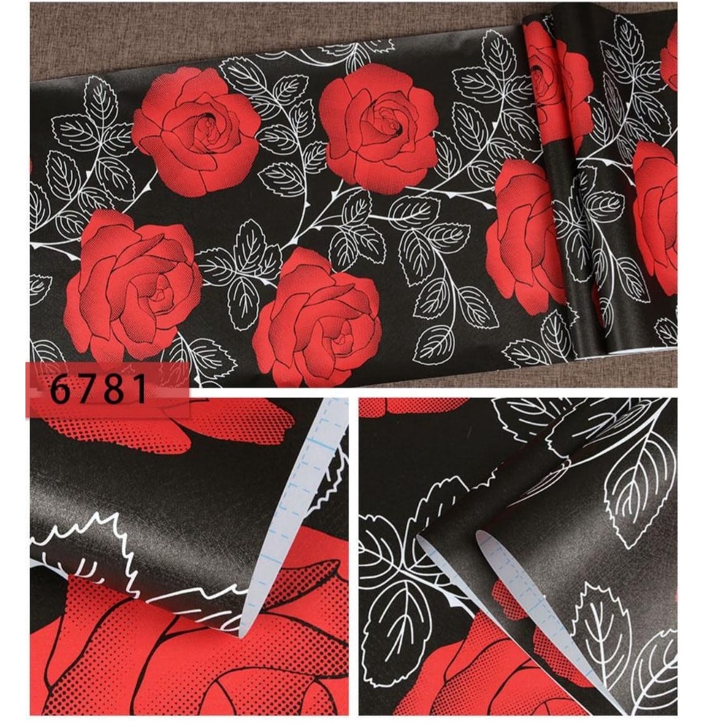 Promo Wallpaper Mawar Merah Dasar Hitam - Wallstiker Kamar Tidur - Wallpaper Dinding