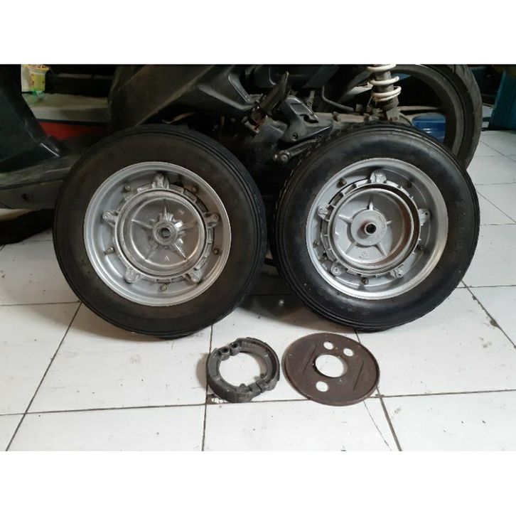 ban velg tromol set depan belakang vespa r10 ring 10 sprin super porek kaki 3 ori original copotan