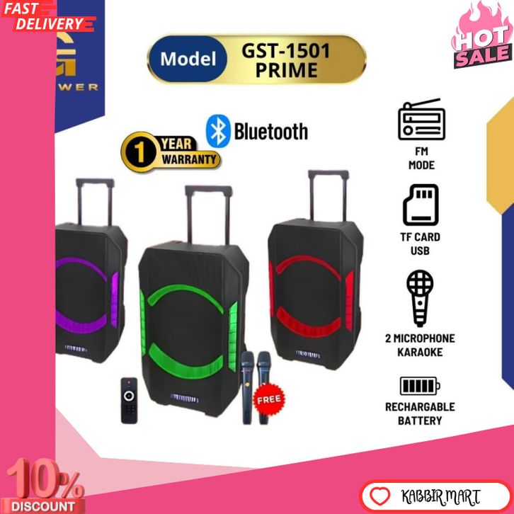 G POWER Speaker Meeting Gst 1501 Prime 15 Inch Speaker Bluetooth Portable Super Bass