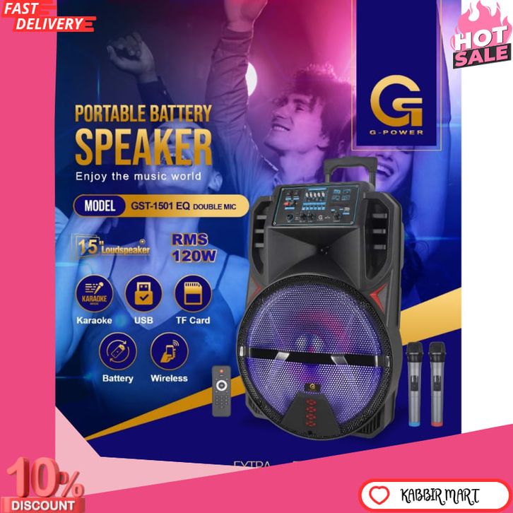 G POWER Speaker Bluetooth Gst 1501 Eq Double Mic Speaker Meeting15 inch Karaoke Bass Garansi Resmi